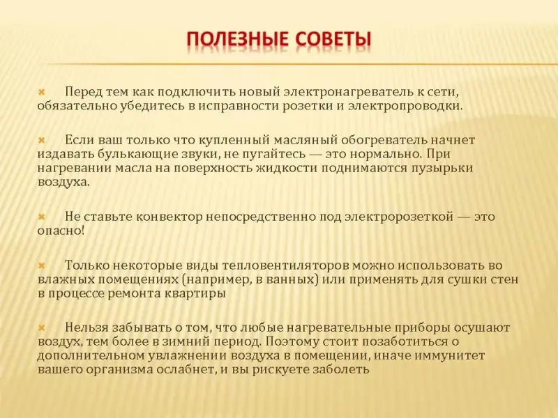 Техника безопасности при использовании электроотопительных приборов: