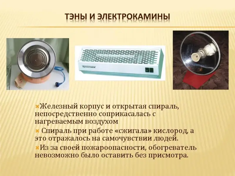 - Спираль при работе «сжигала» кислород, а это отражалось на самочувствии людей.