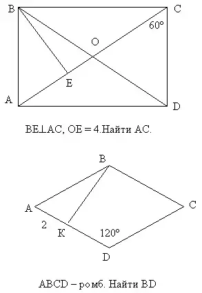 3. Расстояние от точки пересечения диагоналей ромба до его вершины равны 8 см и 6 см. Какова длина каждой диагонали?