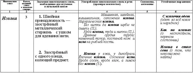 - Как доказать, что слово "иголки" многозначное? (Между значениями слова есть общность, связь - острый предмет, форма.)