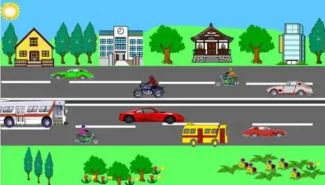 движения, на тротуары добавить дома, деревья, цветы, на небо - солнце, облака и т.д. Создать несколько черепашек - машины, мотоциклы и т.д., которые движутся в разные стороны и с разной скоростью.