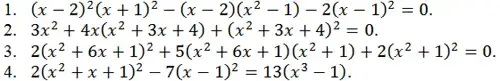 - Методом замены переменной (2x + 1)4 - (2x2 + 5x + 2)2 - 12(x + 2)4 = 0