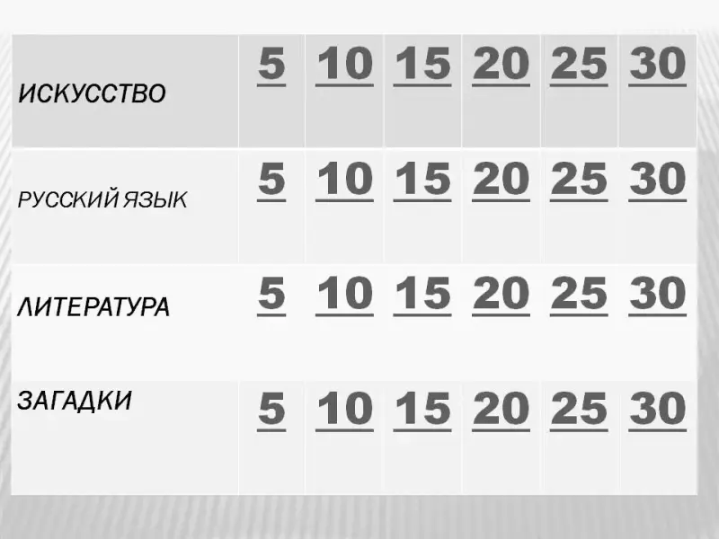 "Своя игра" по русскому языку, литературе, МХК. 6-й класс