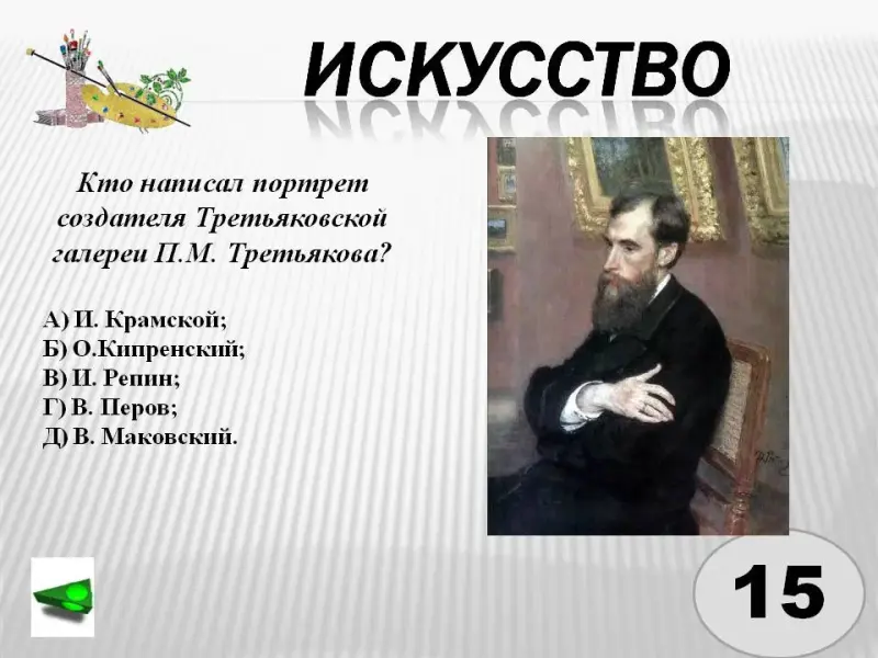 3. Кто написал портрет создателя Третьяковской галереи П.М. Третьякова?
