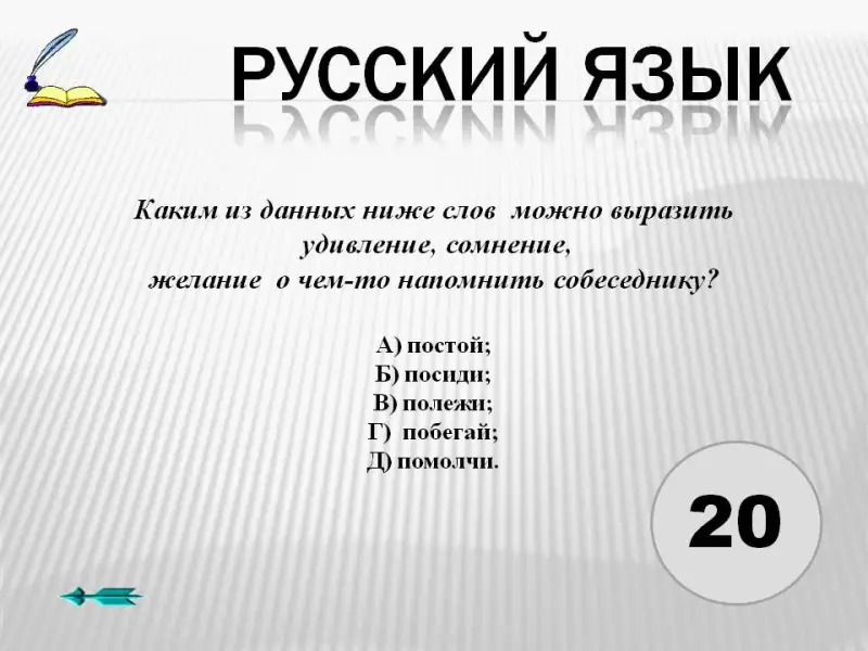 Оборудование: Презентация к игре.