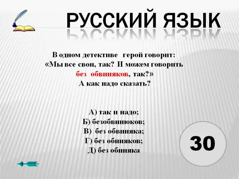 6. В одном детективе герой говорит: «Мы все свои, так? И можем говорить без обвиняков, так?» А как надо сказать?