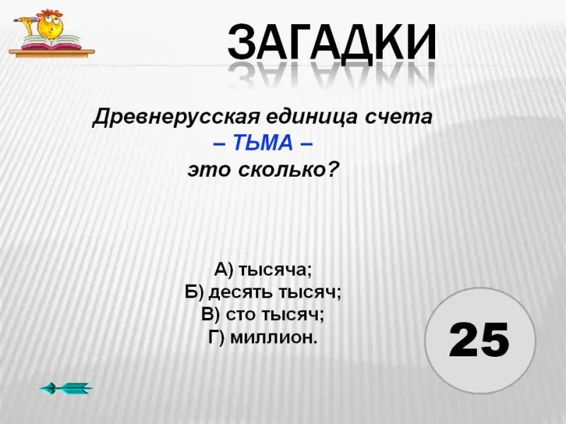 5. Древнерусская единица счета - ТЬМА - это сколько?