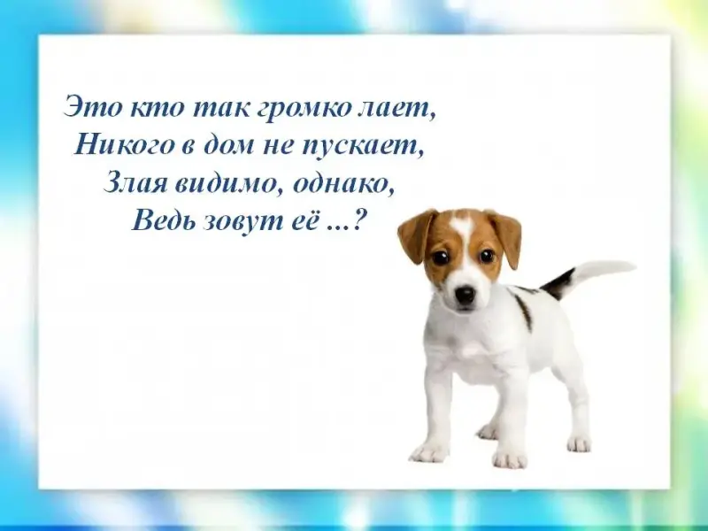 - Правильно, ребята, это собака, но собачка пришла не одна, послушайте следующую загадку: