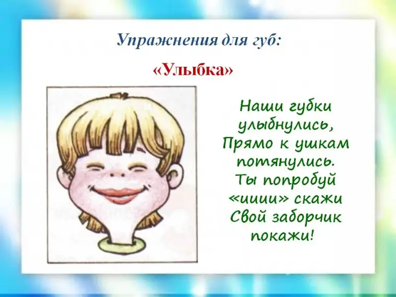 Итак, ребята, заяц приготовил для вас гимнастику, он считает, что для того чтобы произносить все звуки правильно, нужно выполнять упражнения для губ и языка.