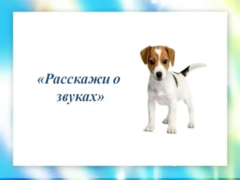 - Следующее задание "Расскажи о звуках" для вас приготовила собачка.