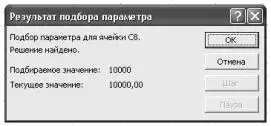 7. В появившемся диалоговом окне щелкнуть по кнопке "ОК", если результат соответствует предъявленным требованиям; в противном случае щелкнуть по кнопке "Отмена" для возврата к исходным значениям ячеек.