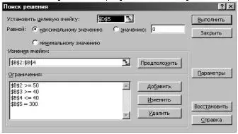 6. Теперь для выполнения процедуры поиска решения введены все исходные данные. Чтобы начать процесс поиска решения задачи, щелкните по кнопке Выполнить.