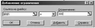 5. Дальше введите ограничения задачи. Ограничения добавляются по одному за один раз и отображаются в окне Ограничения. Для добавления ограничения щелкните по кнопке Добавить.