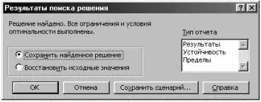 - Создать несколько отчетов о процедуре поиска решения (для выбора нескольких отчетов из списка нажмите клавишу <Shift> или щелкните на нужном типе отчета).