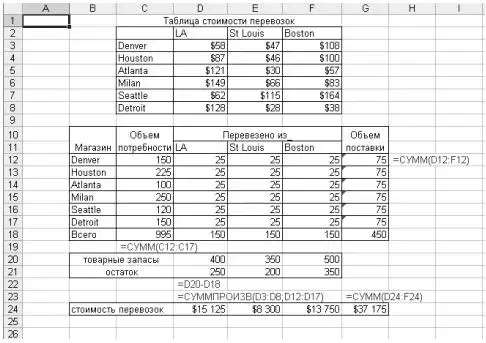 Ниже приведены данные для постановки проблемы. Оба окна отображают один и тот же лист (первое - результаты, второе - формулы).
