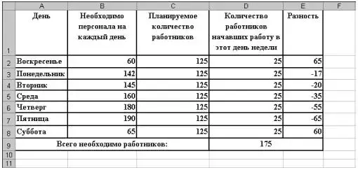 - В столбце Разность содержаться формулы (планируемое_количество_работников - необходимо_персонала), по которым вычисляется количество необходимого персонала из планируемого количества людей. Это позволяет определить избыток или недостаток персонала.