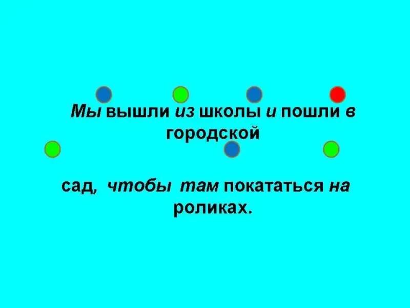 Здесь слова разных частей речи обозначены цветными кружочками, соответствующими части речи. Здесь видны все части речи, (также будет на листке у руководителя группы), а на листах остальных членов группы будут обозначены слова только вашей части речи. Это делается для того, чтобы потом мы могли быстро подсчитать слова. Ещё один момент, на который нужно обратить внимание. В тексте некоторые слова напечатаны другим шрифтом. Это слова, относящиеся к другим частям речи, которые не относятся к нашему исследованию. Над этими словами ничего ставить не нужно. Каждая исследовательская группа получит свой текст. Тексты будут разными для чистоты нашего эксперимента. Чтобы вам легче было работать, можете воспользоваться справочным материалом, который лежит на столах у каждой группы (Таблица "Части речи").