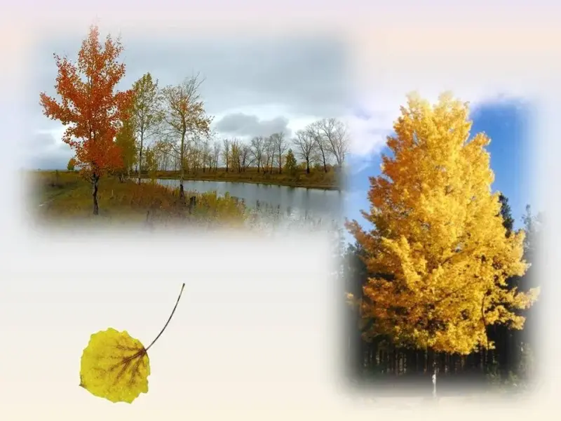 - Послушайте, как красиво описал это дерево Иван Сергеевич Тургенев: "Трепетнолистая осина бывает красива и заметна только осенью. Золотом и багрянцем покрываются ее листья, и ярко отличаясь от зелени других деревьев, придает она много прелести и разнообразия лесу во время осеннего листопада"