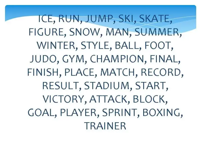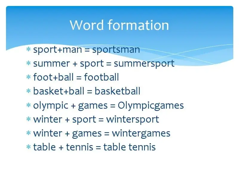 - лексическая разминка, включающая в себя наглядное объяснение образования сложных слов в английском языке на примере спортивных терминов;