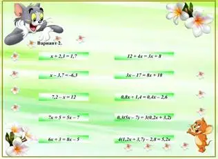 Посмотреть решение можно кликнув рядом с цветком у Мыши, не вызывая ответа, нумерация уравнений сверху вниз и влево от Мыши.