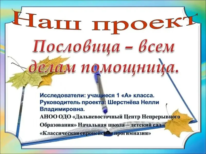 Перспективы дальнейшего развития проекта. Данный проект могут использовать в своей работе другие учителя начальных классов для формирования компетентности учеников в сфере самостоятельной познавательной деятельности, навыков самостоятельной работы с большими объемами информации; оказывать помощь в осознании значения пословицы, формировать умения применять ее в речевой ситуации;
