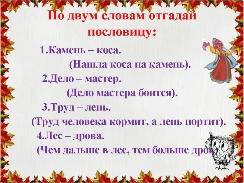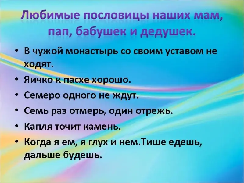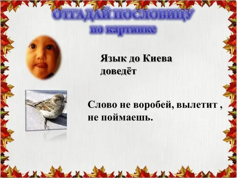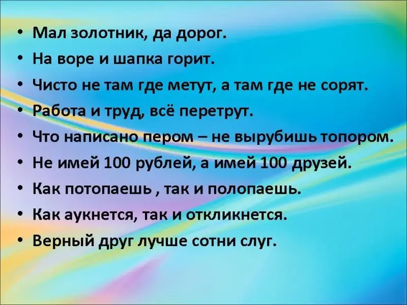 7) Правильное использование пословиц в речи отражает уровень воспитанности и культуры человека.