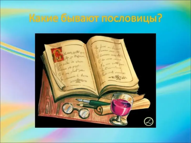 Пословицы и поговорки - это короткие, простые, меткие и поучительные изречения. Они складывались ещё до того, как появилась грамотность. В пословицах народ передавал детям и внукам свои заветные правила жизни, учил уму-разуму. Старинные пословицы живут и сегодня - в разговоре, в книгах.