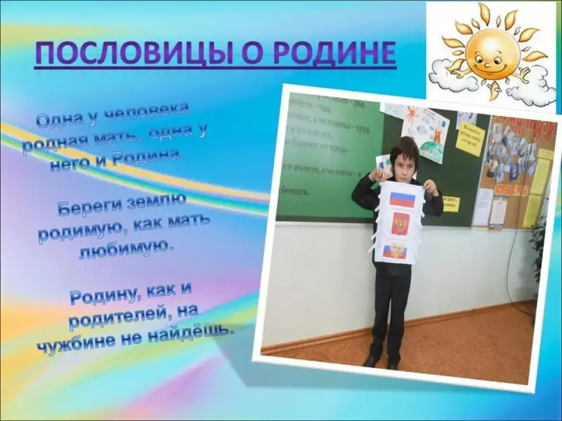 Наша Родина - это Россия или Российская Федерация. Это самая большая и самая красивая страна на свете. Все мы любим и гордимся своей страной. (Слайд 13)