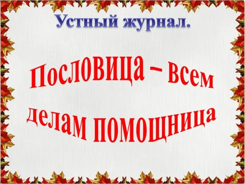 Урок внеклассного чтения "Устный журнал "Пословица - всем делам помощница"