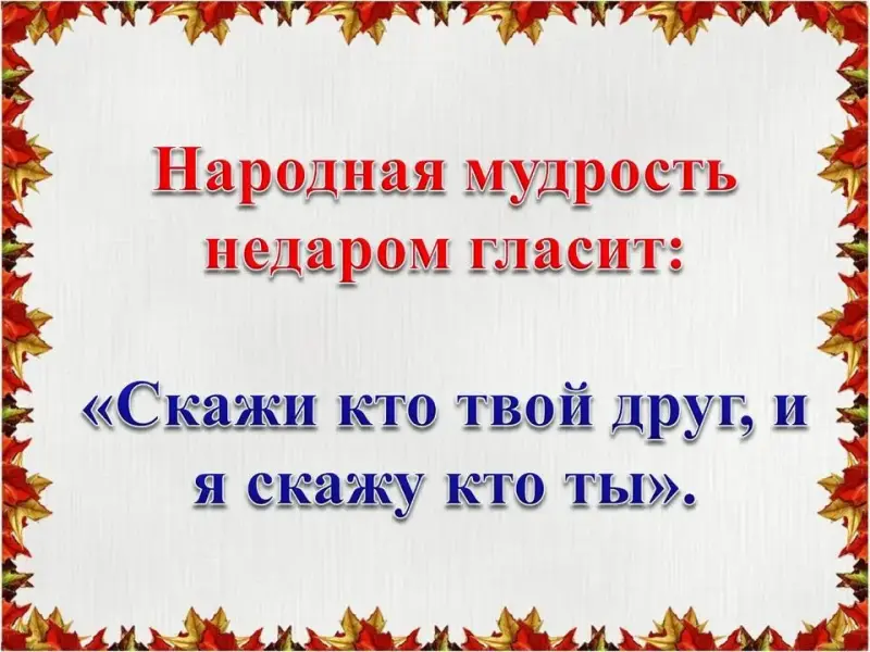 Народная мудрость недаром гласит: "Скажи кто твой друг, и я скажу кто ты".(Слайд 6 )