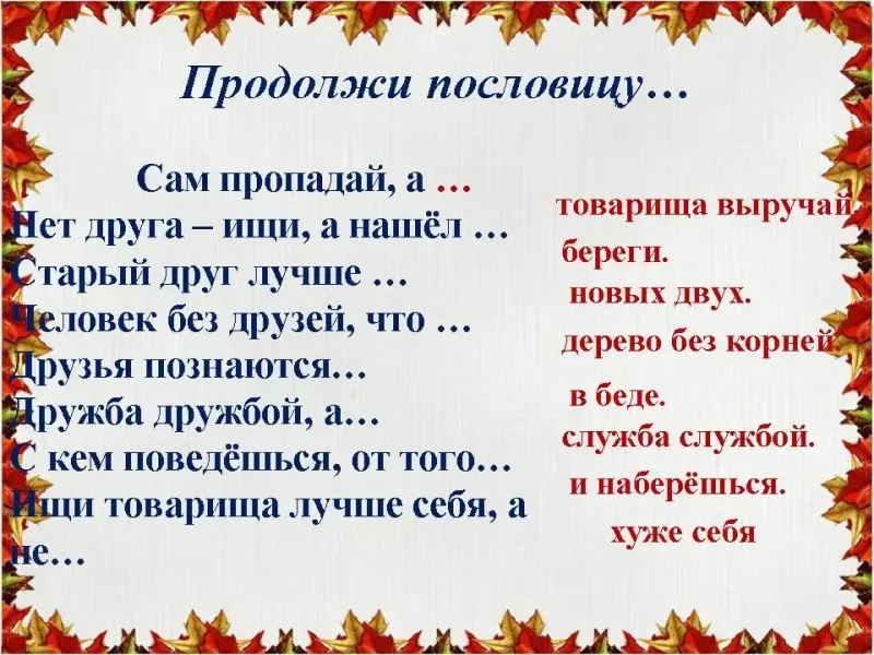 "Птица сильна крыльями, а человек - дружбой" - так гласит русская пословица. Хорошо ли вы знаете пословицы о дружбе?