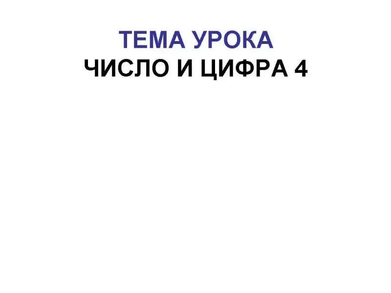 Цель урока: научить учащихся распознавать и писать цифру 4.