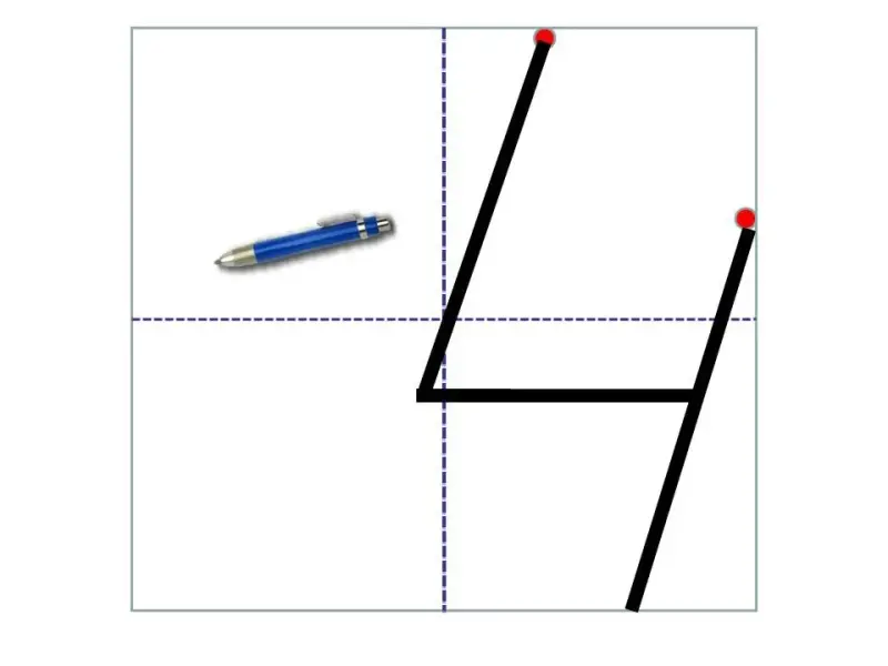 1) Рассмотрите образец написания цифры 4. На что похожа цифра 4?