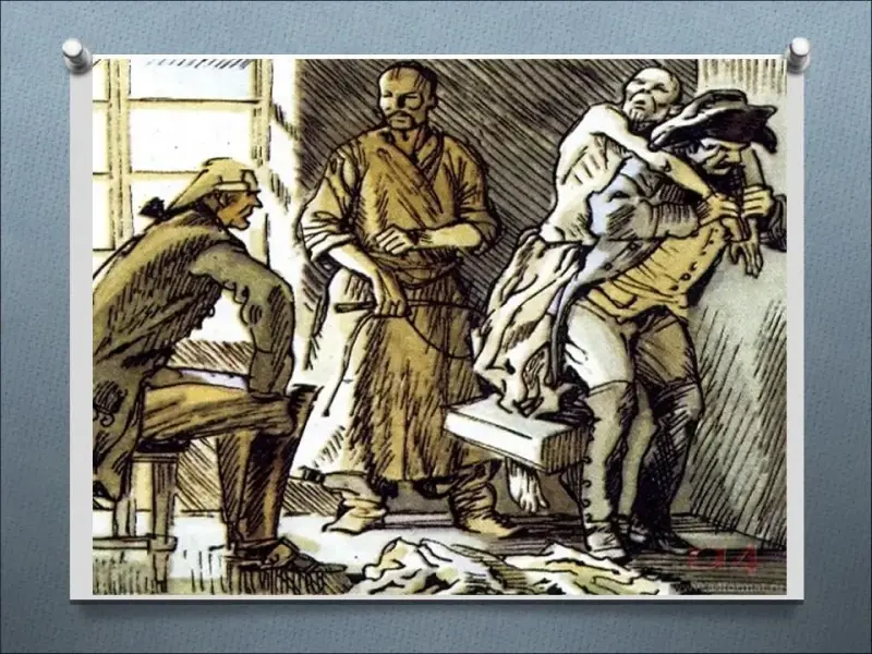 (Савельич боится незнакомца, видит в нем вора и разбойника, пьяницу.)