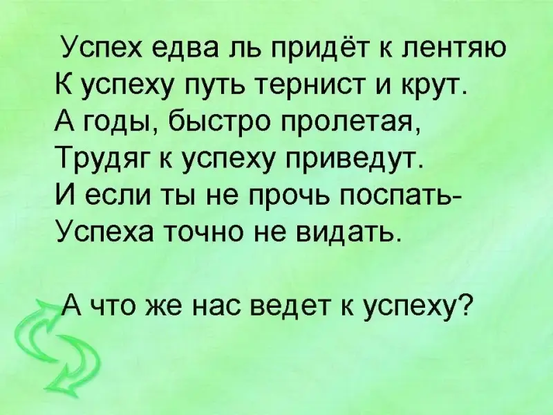 - Ребята, а что же нас ведет к успеху? (ответы детей)