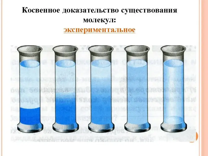 Я могу продемонстрировать следующий опыт: опыт с мензурками с небольшим объемом воды и стаканом с окрашенной водой. При переливании воды из стакана в мензурку № 1, из мензурки № 1 в мензурку 2, из мензурки № 2 в мензурку № 3. Наблюдаем, что в мензурках вода окрашивалась, хоть и не так ярко как в стакане.