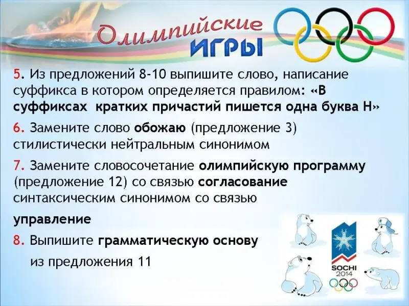 Открытый урок русского языка «Олимпийский экзамен» (2014 год). Подготовка к ОГЭ по русскому языку