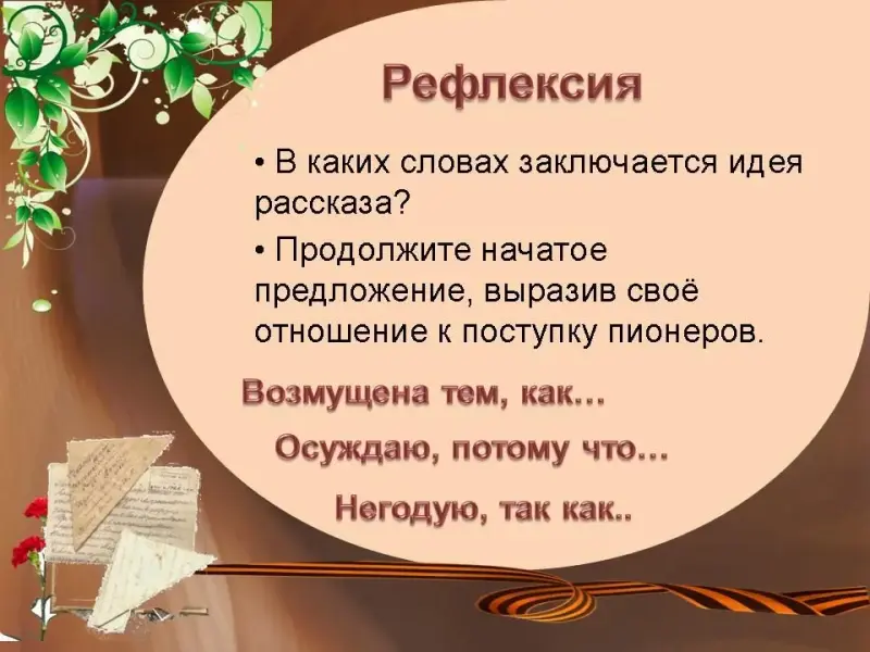 Задание в тетрадях: Продолжите начатое предложение, выразив своё отношение к поступку пионеров.