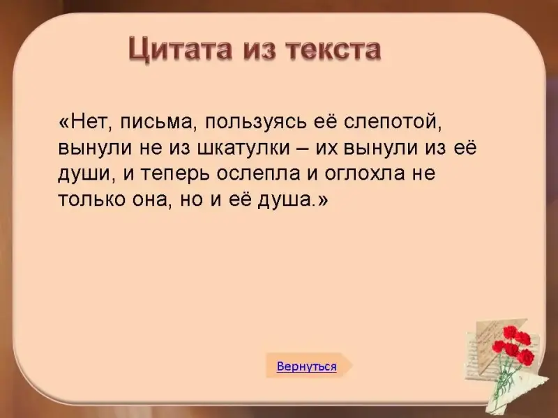 - Зачем каждый день Анне Федотовне читали письма, присланные сыном и его другом с фронта?