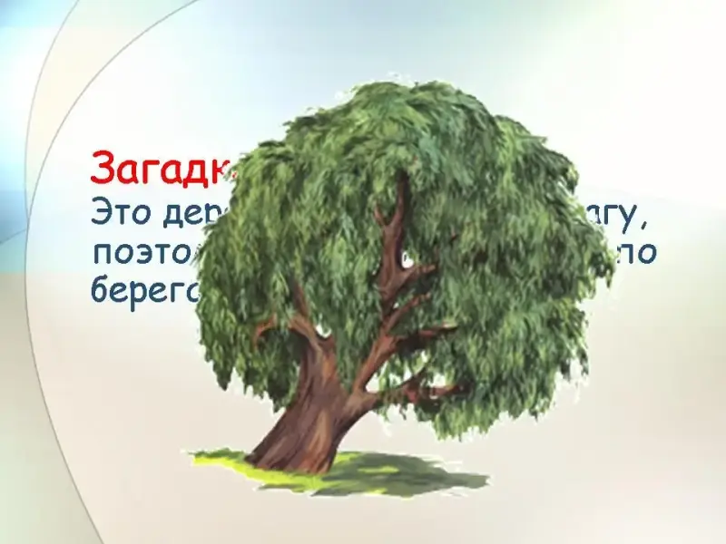 - Это дерево очень любит влагу, поэтому мы часто видим его по берегам рек и озер (ива) (Слайд 7).
