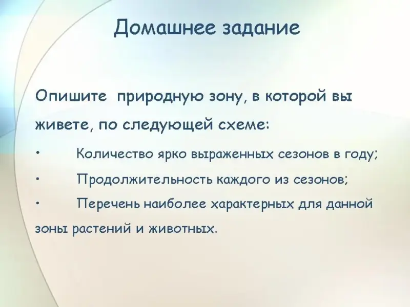 Предложить детям описать природную зону, в которой они живут, по следующей схеме: