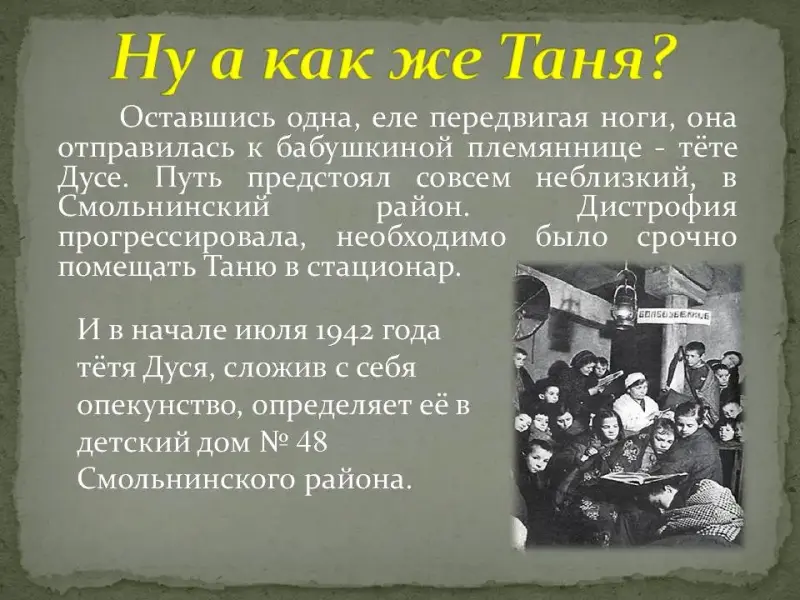 Ведущий (2): Когда замкнулось блокадное кольцо, в Ленинграде помимо взрослого населения оставалось 400 тысяч детей - от младенцев до школьников и подростков. Естественно, их хотели сберечь в первую очередь, стремились укрыть от обстрелов, от бомбёжек. Всесторонняя забота о детях и в тех условиях была характерной чертой ленинградцев. И она же давала особую силу взрослым, поднимала их на труд и на бой, потому что спасти детей можно было, только отстояв город.