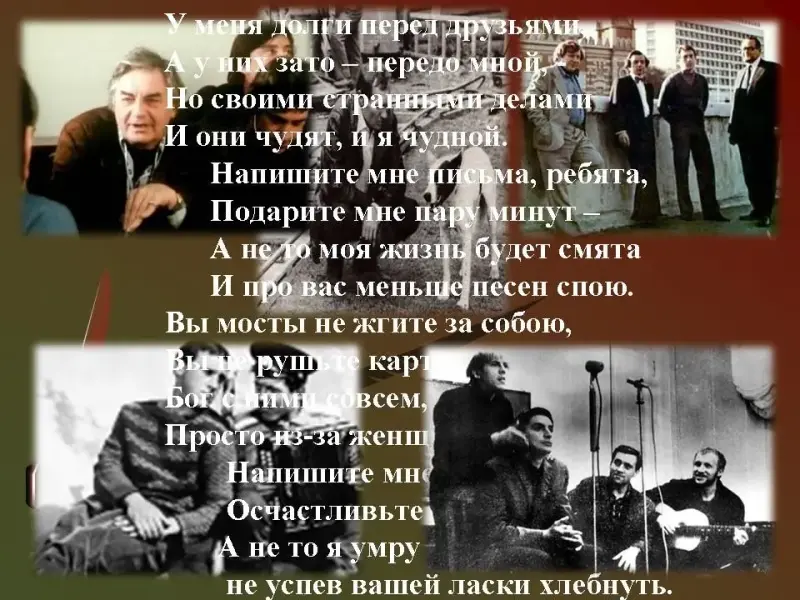 Дружба - это слово никогда не было для Высоцкого пустым звуком. Он считал, что дружба - это не значит, каждый день звонить, здороваться и занимать рубли...