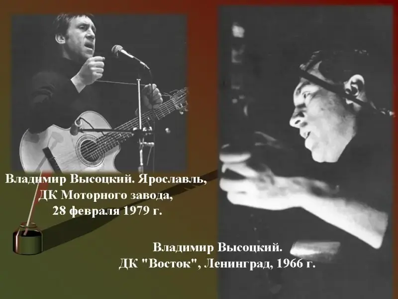 Ведущий: Устроители концертов предпочитают не связываться с опальным поэтом. Но Высоцкий востребован. В Москве и Ленинграде не проходит ни оного официального концерта, его площадками остаются залы научно-исследовательских и учебных институтов, дома культуры областных городов, воинских частей, клубов песни. Высоцкий выступает по четыре-пять дней подряд, давая по три-пять концертов.