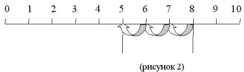 Проверка вычитания: 8-3=5. На шкале линейки счетной палочкой отмечается восьмой штрих, а затем справа налево отсчитывается три деления и второй палочкой фиксируется результат 5 (рисунок 2).