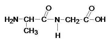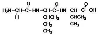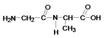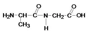 Давайте посмотрим на доску, где изображен дипептид, состоящий из остатков одной и той же аминокислоты - глицина. Также на доске вы видите две отдельные формулы аминокислот - аланина и валина.