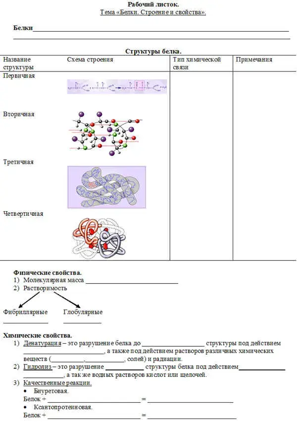 Цель: Сформировать понятия белок, структуры белка, физические и химические свойства белков.