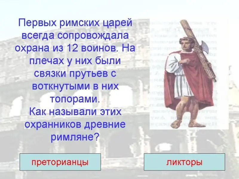 а) преторианцы б) ликторы