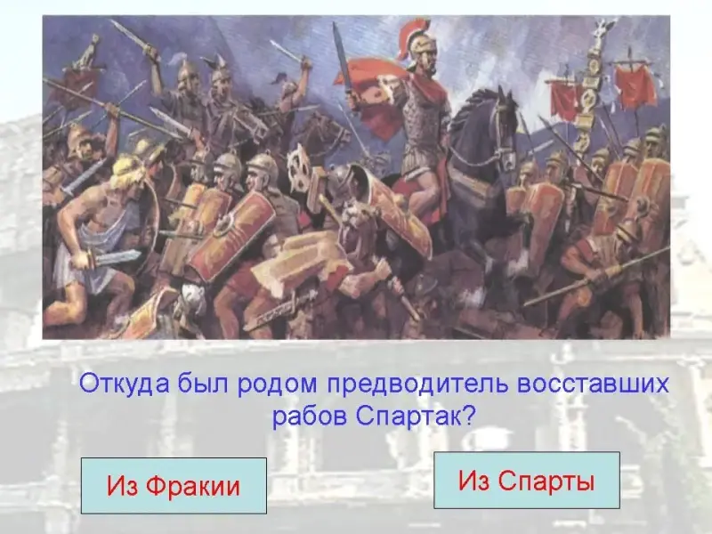 12. Откуда был родом предводитель восставших рабов Спартак?