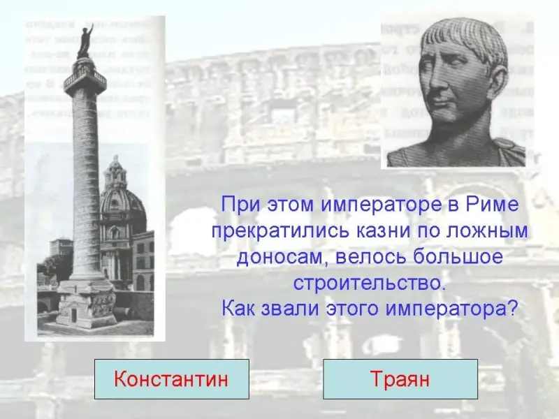а) Константин б) Траян